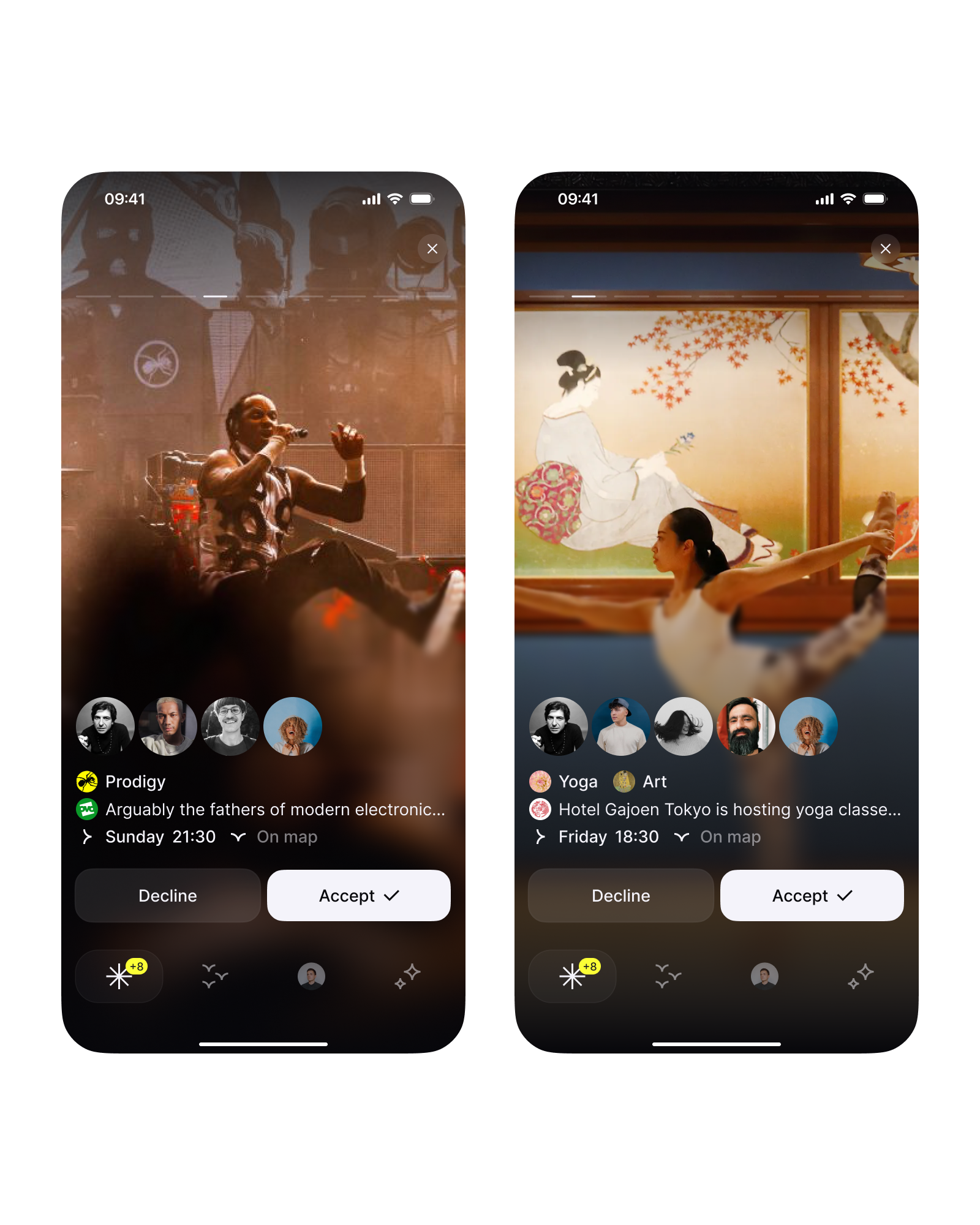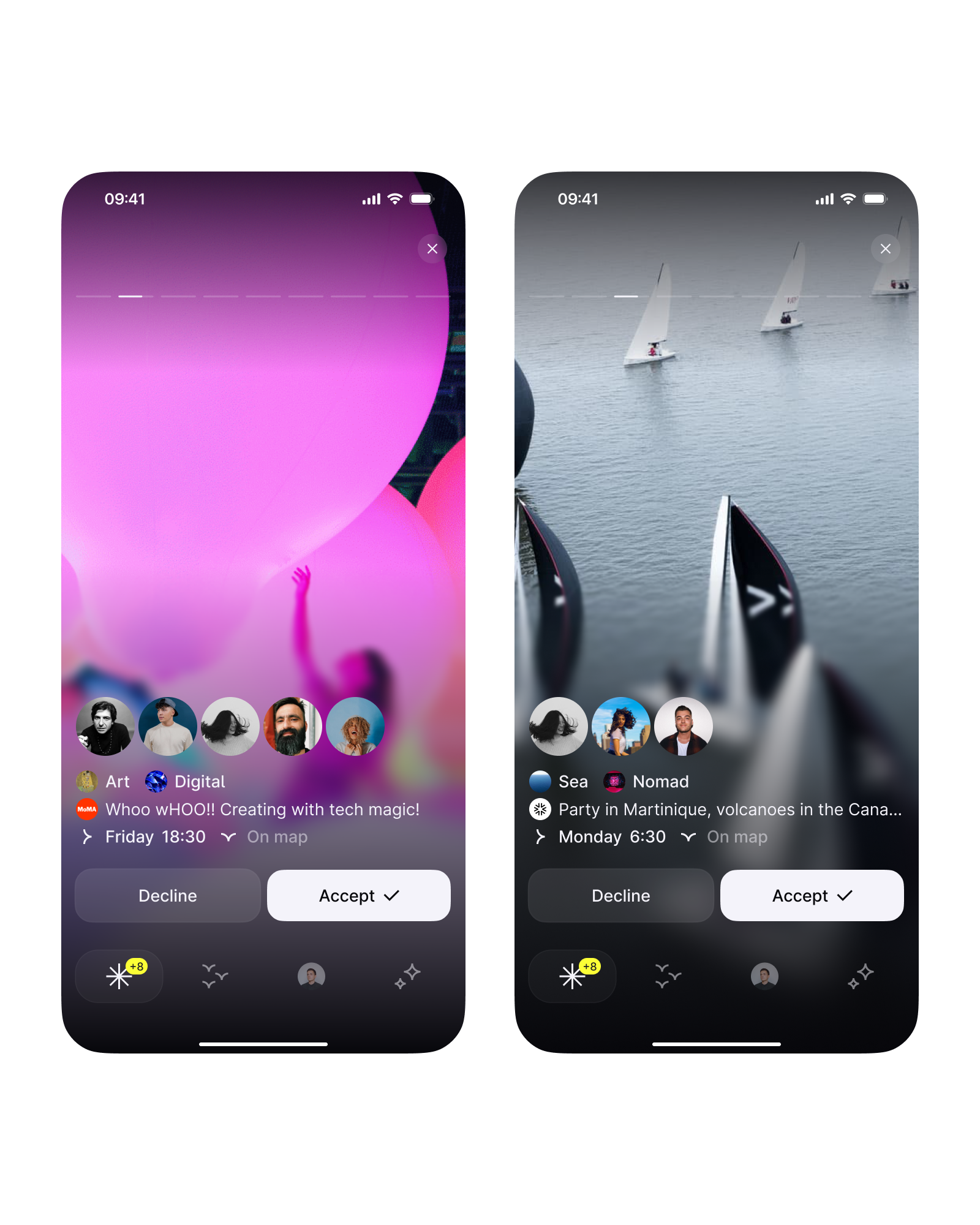 Flocks is a vibe-based matching app that helps people discover new places and events together. It connects users not by interests alone, but by shared mood, energy and the way they experience the world.