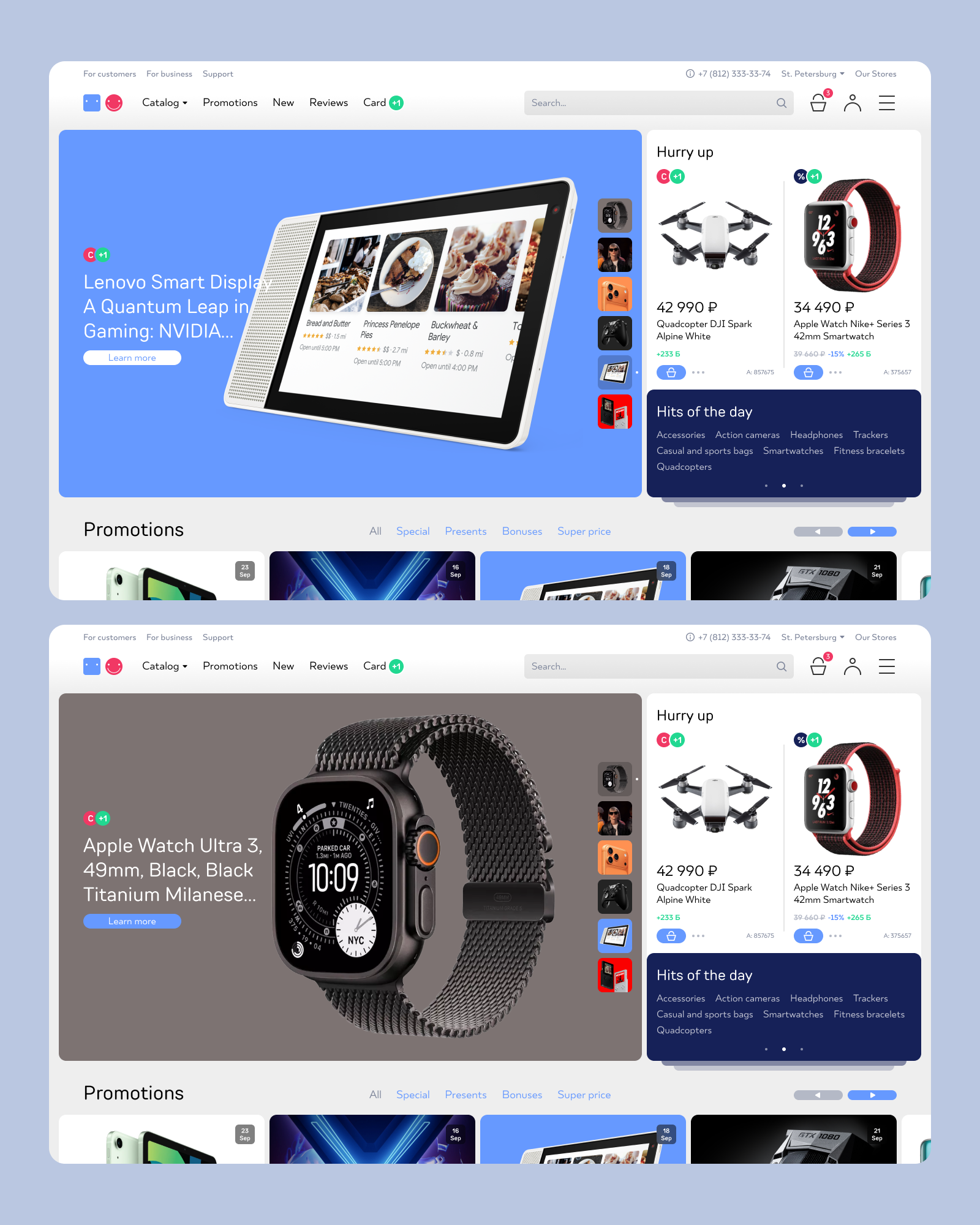 Key.ru, the largest electronics retailer in St. Petersburg, teamed up with agency for redesign of its online store. We had to do an in-depth study of the existing interface, formalize the needs of the business together with the client team and create new experience in interacting with a large e-catalog of products, company services, while preserving the familiar website structure for customers.