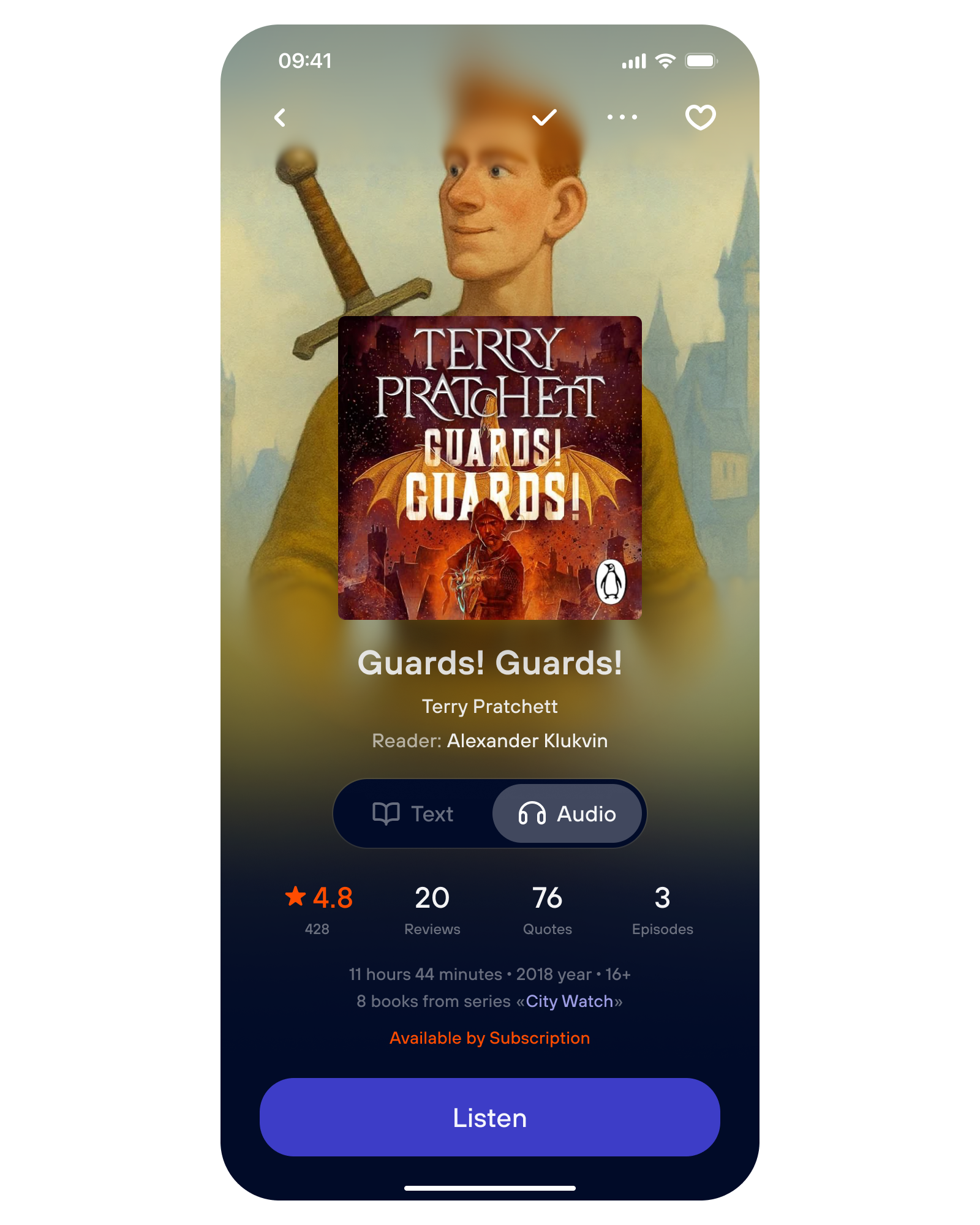 A concept for LitRes showing how AI-generated illustrations can enhance audiobooks by giving every chapter a unique visual identity and making the listening experience richer and more immersive.