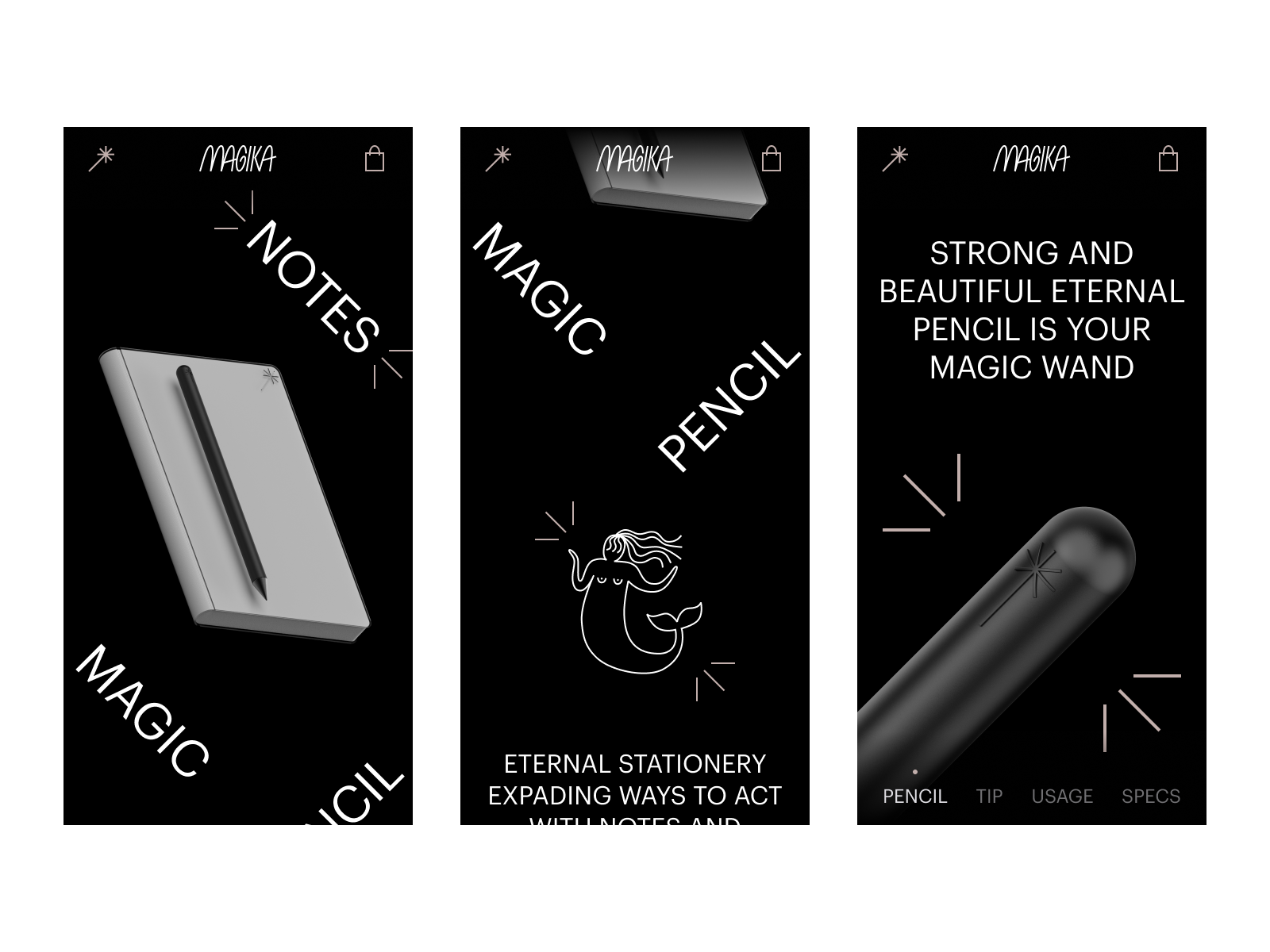 Magika is a product concept designed as part of a study project, including naming, brand identity, and physical product design for an everlasting stationery kit. Reinventing paper, Magika presents a waterproof notebook and an ever-writing metal pencil, redefining the way you draw and take notes.