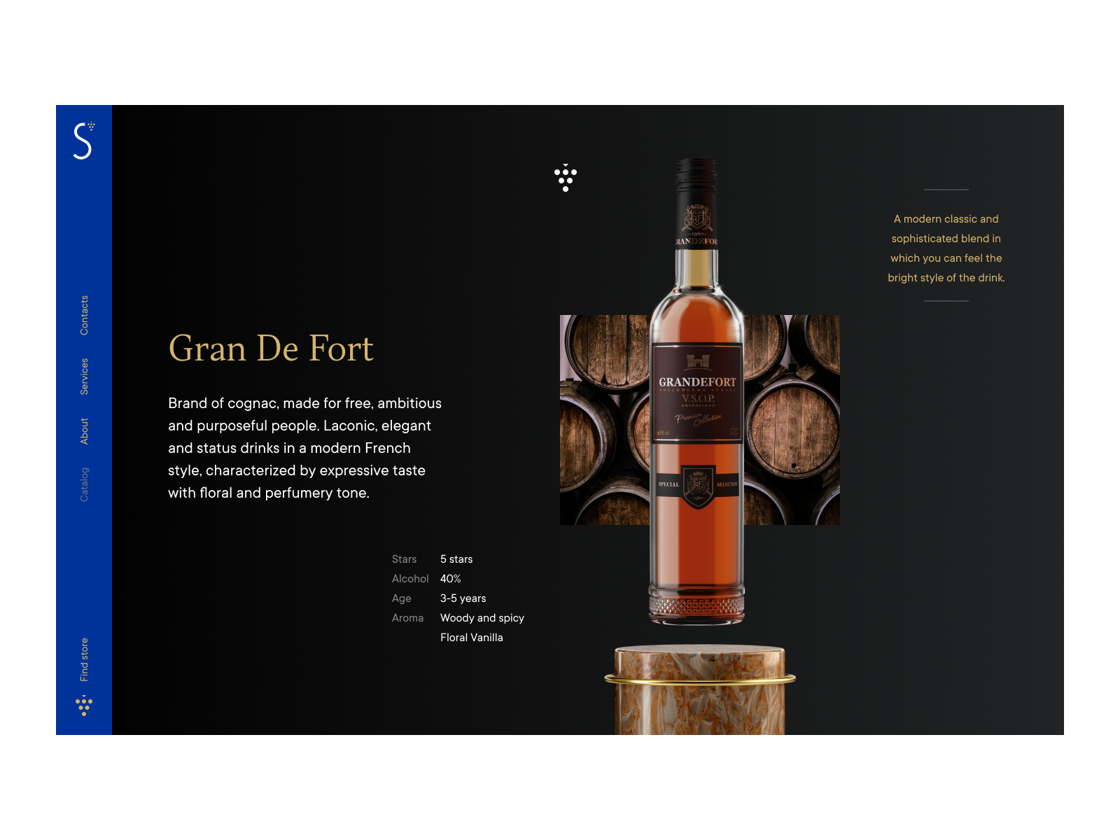 Spiritus is an expert in logistics and alcohol production. After creating the new brand, our task was to develop and launch company website. The website tells about the history and services of the company, the process of production of alcoholic drinks, and also shows a catalog with its own brands.