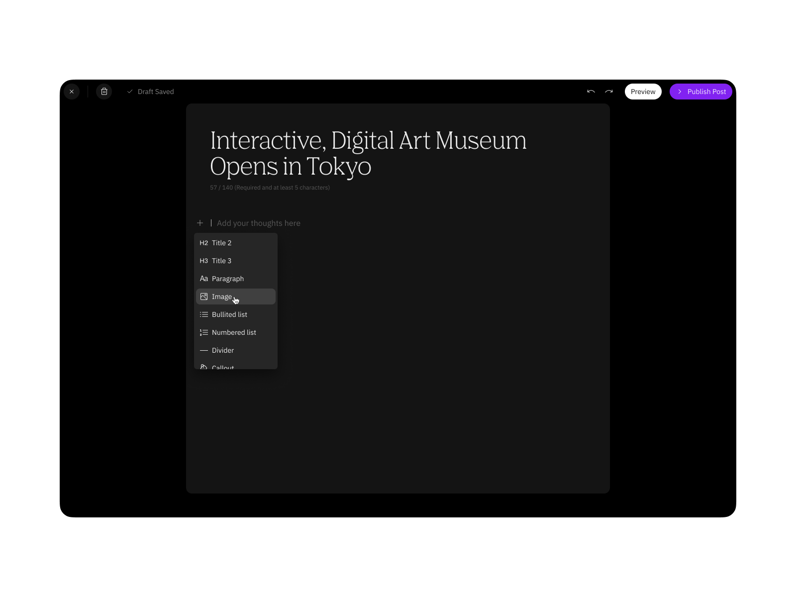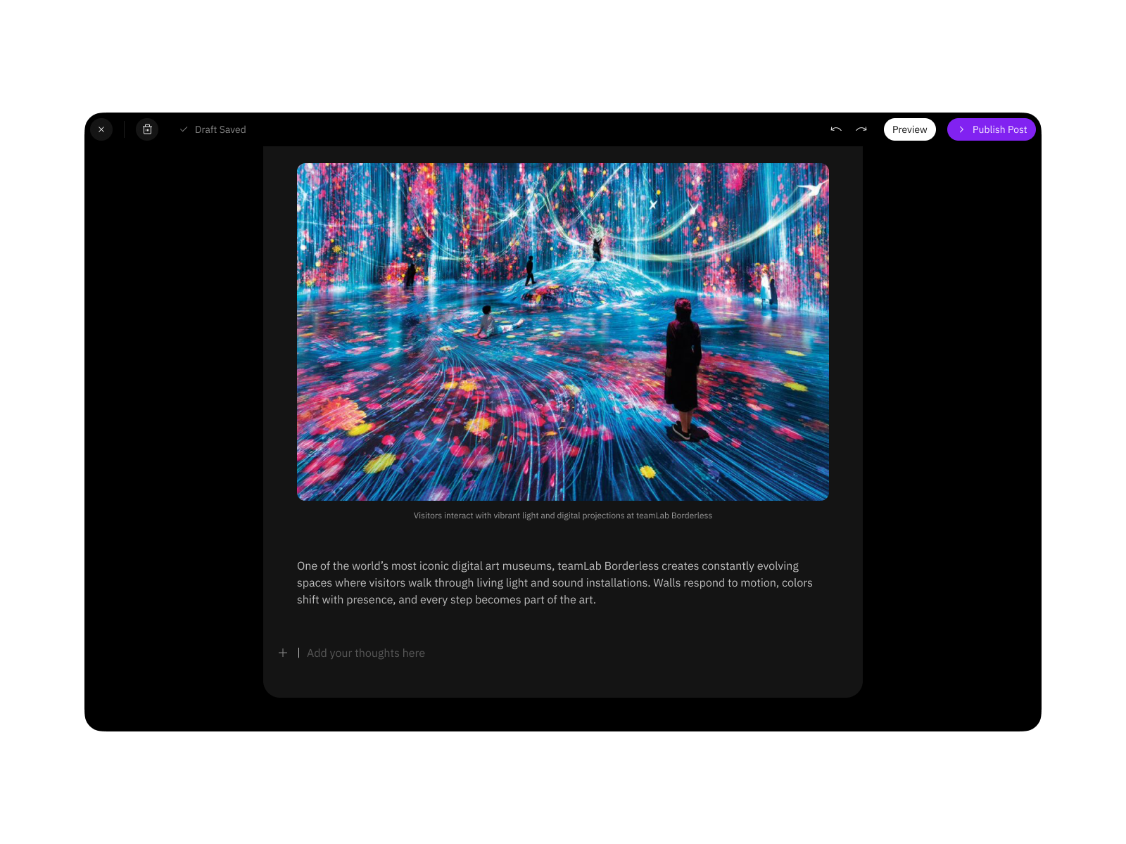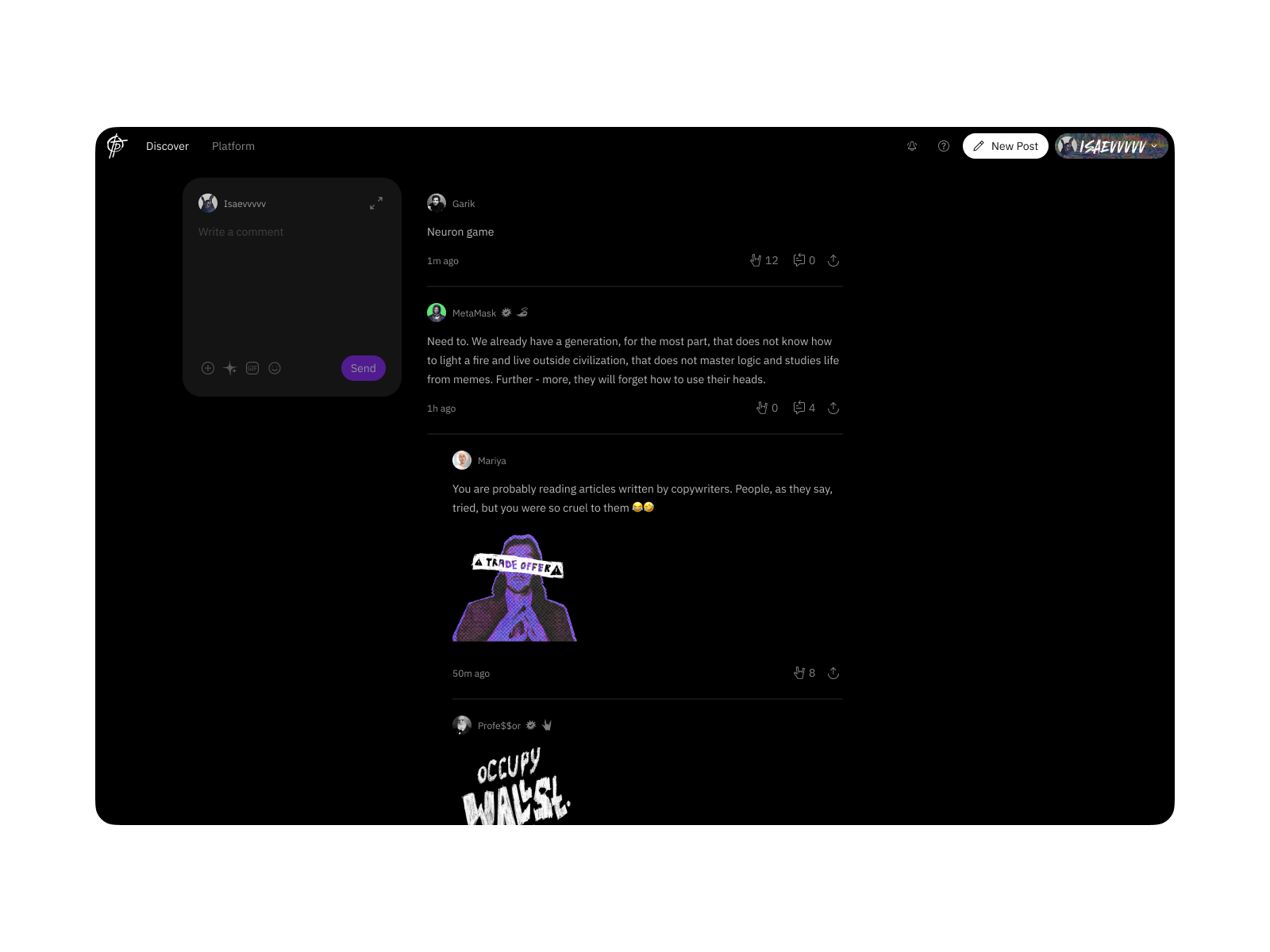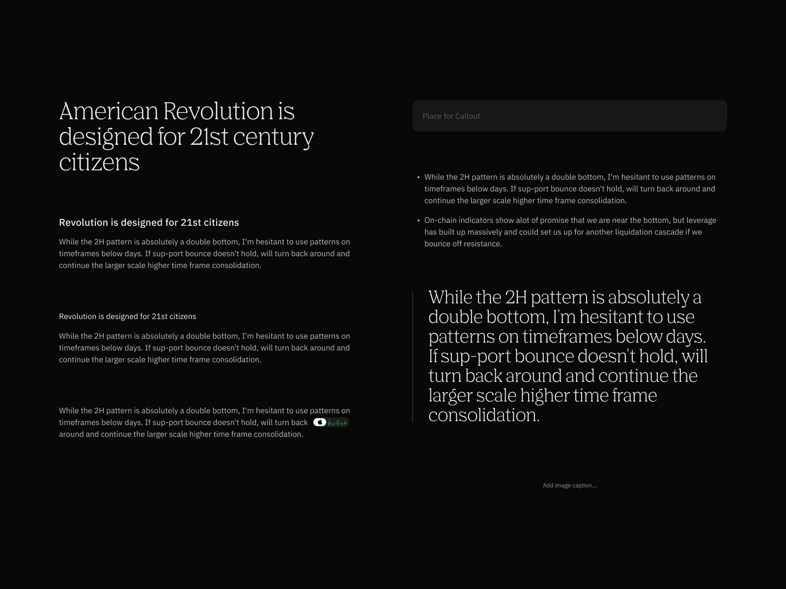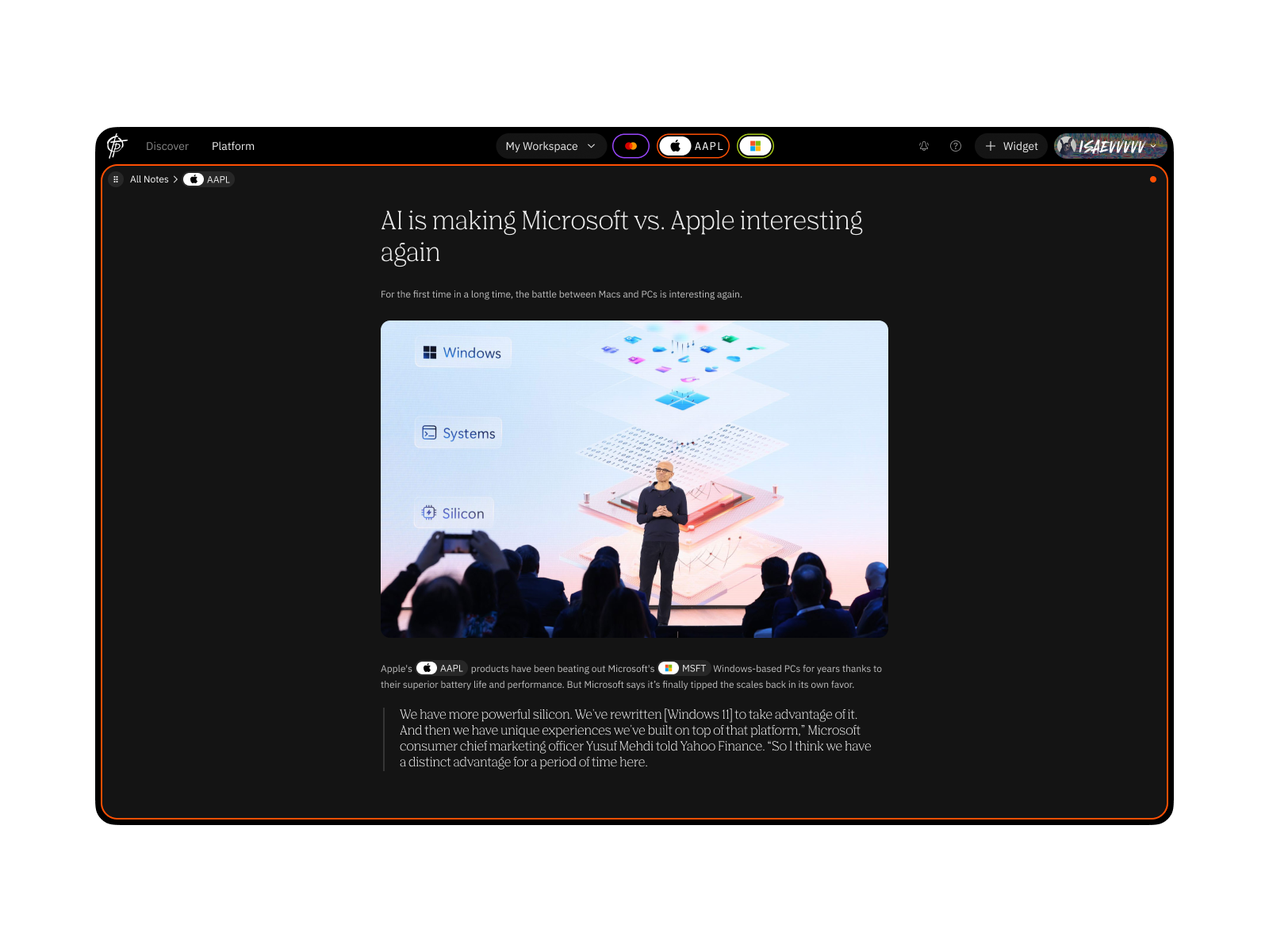 During my two years at TakeProfit, I participated in the design of key platform elements, designed and launched the media component, and developed two widgets. One of these, Notes, allows for note-taking within the product, without having to switch between an external service and the platform. This strengthens the ecosystem by enabling new interaction scenarios with other tools and the platform's media component.
