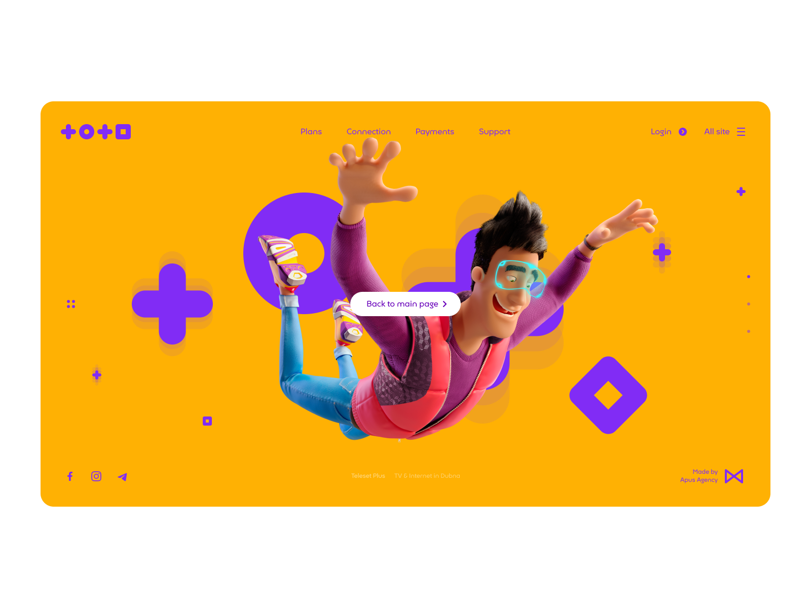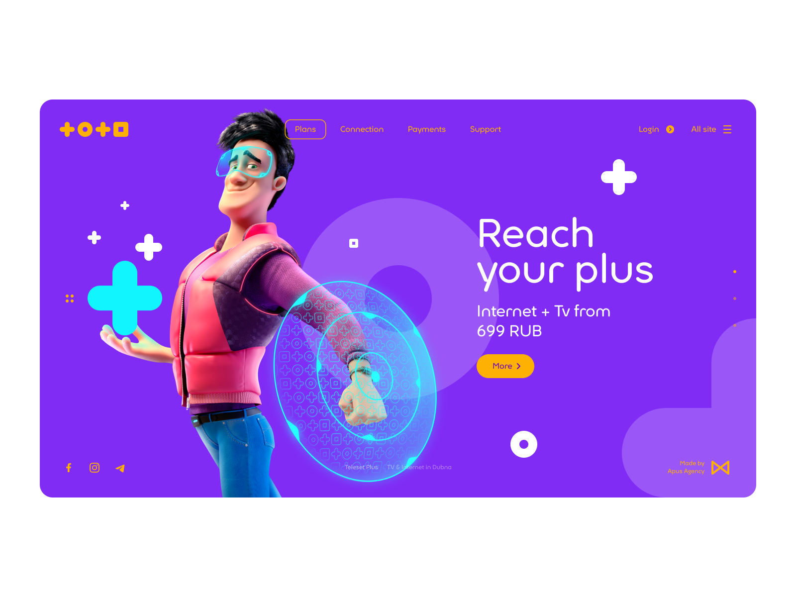 Teleset.plus is a regional telecommunications company in Dubna. The new website was developed as part of rebranding along with Apus↗ design team for the specific tasks of the Teleset.plus company, including the promotion of Internet + TV services. The new design of the website makes the processes of submitting a request to activate the service easier for users, featuring the main sections: pricing, activation, balance top-up and support.