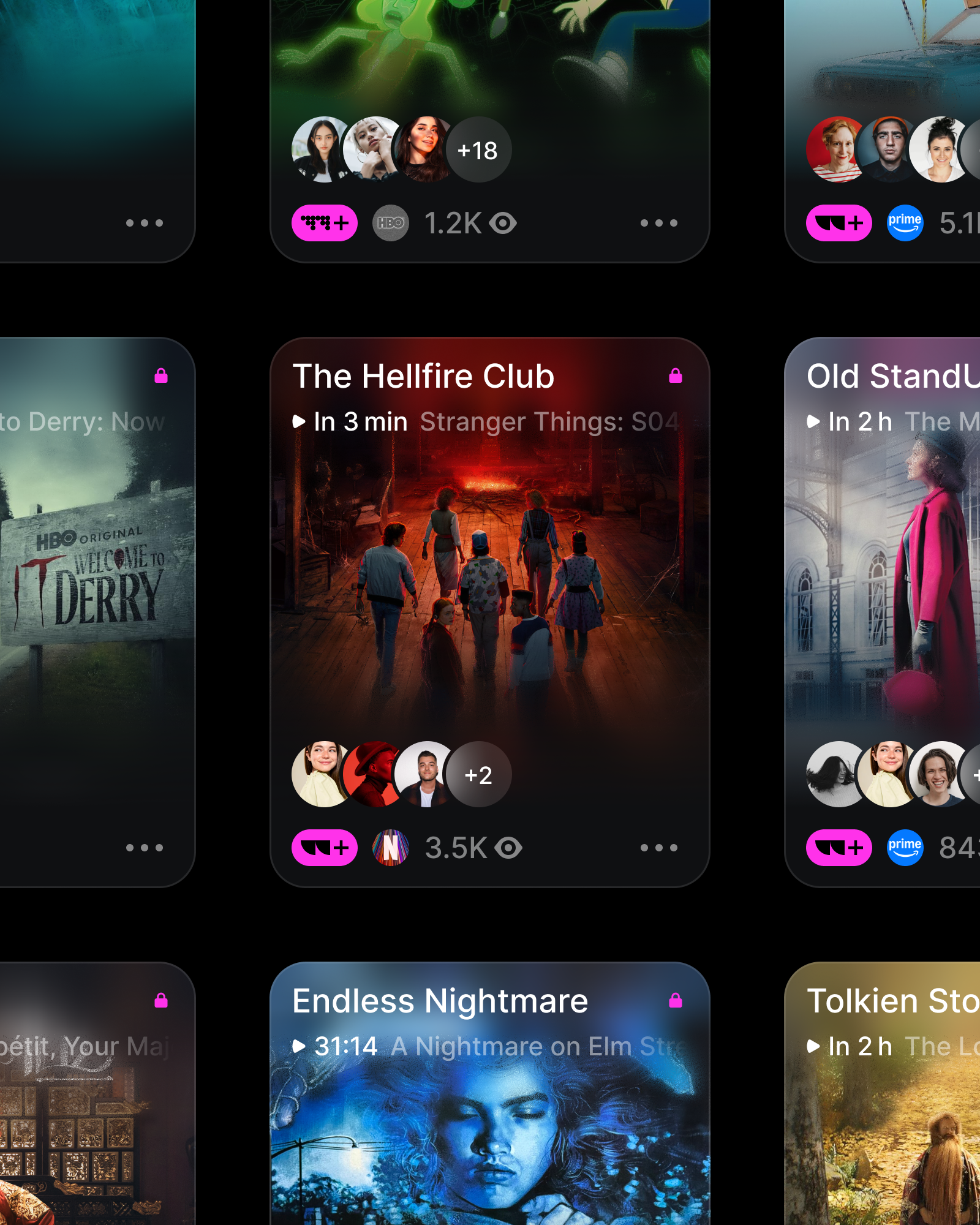 Watchers is a live streaming platform that lets users watch movies, series, events and sports together in real time. The product combines shared viewing, communication tools and interactive features to create a social, app-based entertainment experience.